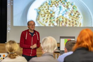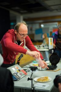 Florian Freistetter zog die Zuschauer in seinen Bann und berichtete von der einen oder anderen Sternengeschichte, die kaum einer kannte. Highlight seines Vortrags war, dass man das Universum auch schmecken könne. Freistetter backte daher vor Ort leckere Waffeln und erzählte spannend, welche Atome in den Zutaten wo und wann im Weltraum entstanden sind. Der eine oder andere Besucher ließ sich nicht zweimal bitten und kostete genüsslich von der kosmischen Waffel Freistetters.