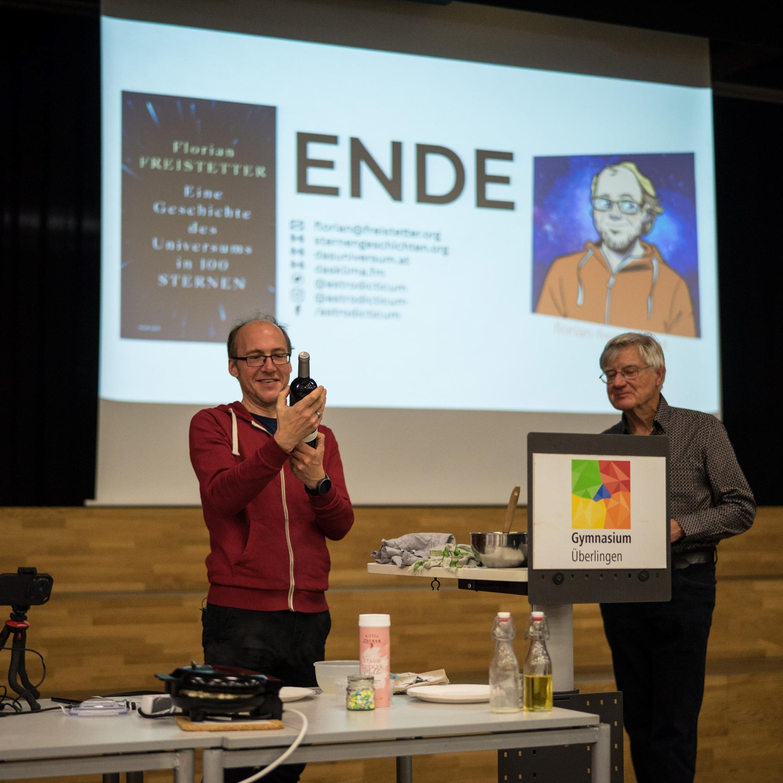 Wir danken Dr. Freistetter für den tollen Vortrag, Herrn Dr. Rainer Röver für die Vermittlung zum Vortragenden und allen Beteiligten, insbesondere den Schülerinnen und Schülern des Gymnasiums Überlingen für den großartigen Rahmen.