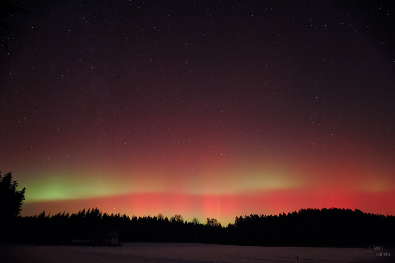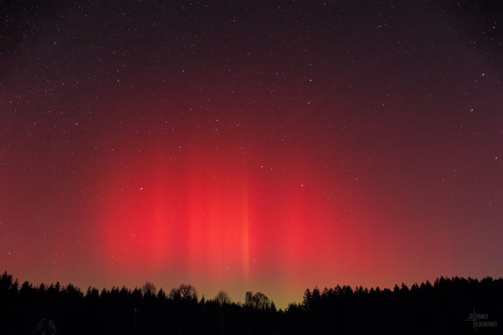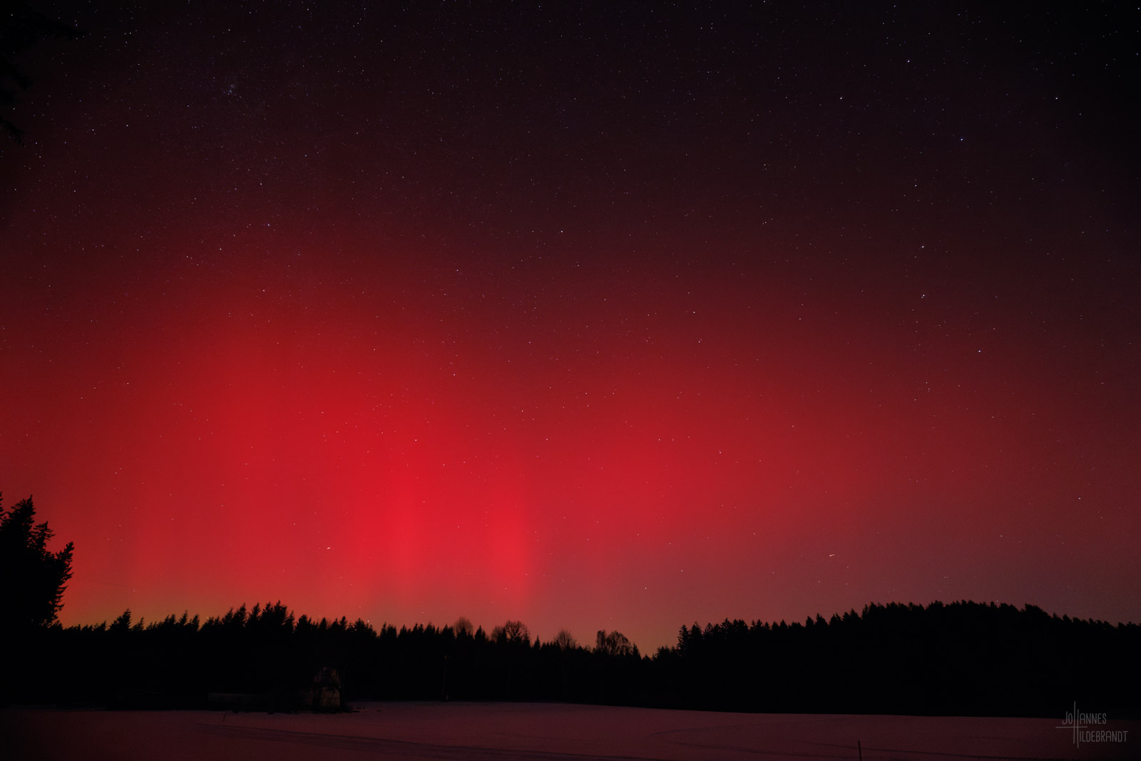 In der Bodenseeregion hat man im Winter gerne mit viel Nebel zu kämpfen, so auch an dem Abend des 19. Januar. Zum Glück reichte ein Standort bei Vogt im Landkreis Ravensburg auf gut 700m Höhe aus, um einen freien Blick auf die Lichtshow zu bekommen.