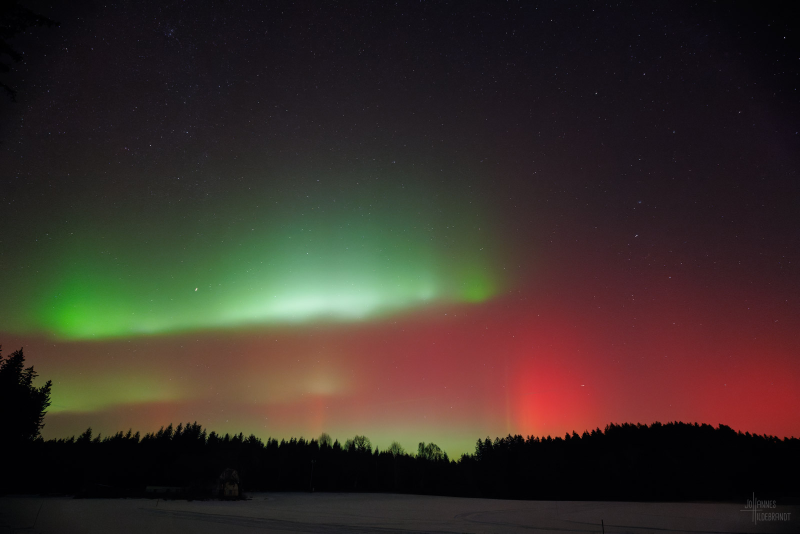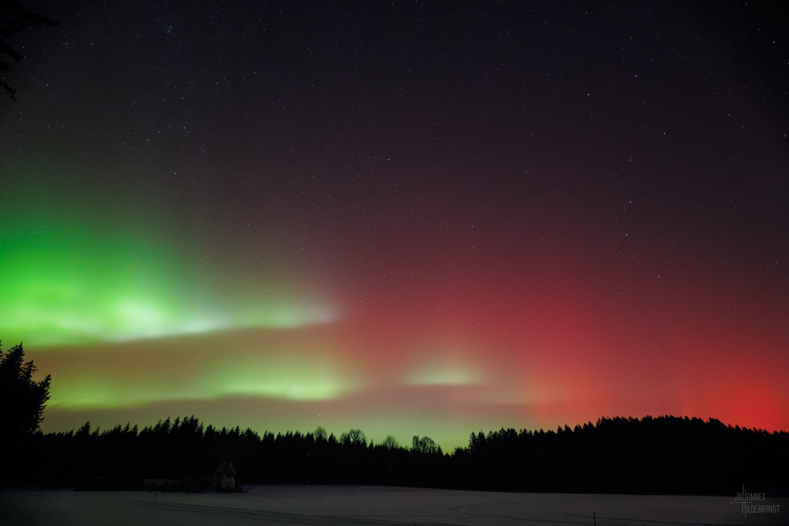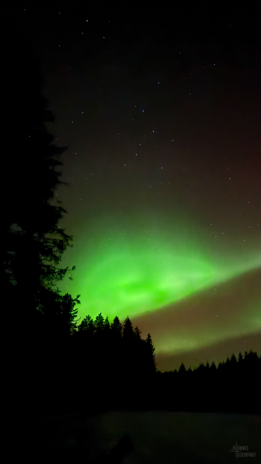 In der Bodenseeregion hat man im Winter gerne mit viel Nebel zu kämpfen, so auch an dem Abend des 19. Januar. Zum Glück reichte ein Standort bei Vogt im Landkreis Ravensburg auf gut 700m Höhe aus, um einen freien Blick auf die Lichtshow zu bekommen.