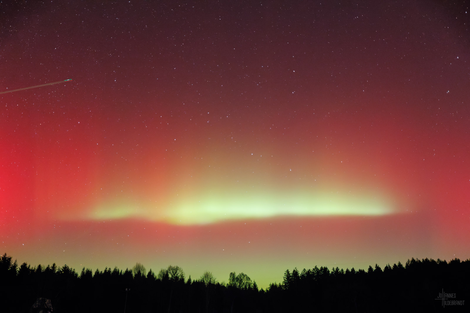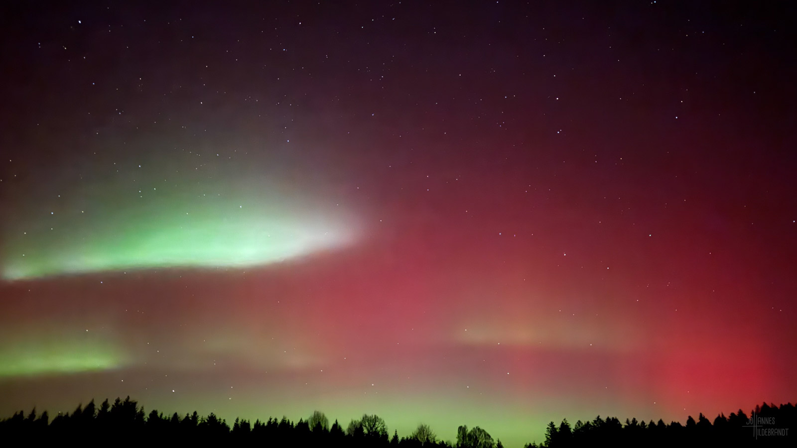 Nur etwa 25 Stunden später erreichte der Sonnensturm die Erde und sorgte für ein farbenfrohes Himmelsspektakel bis ins südliche Europa was normalerweise aufgrund des Erdmagnetfeldes nur den Polarregionen vorbehalten ist.